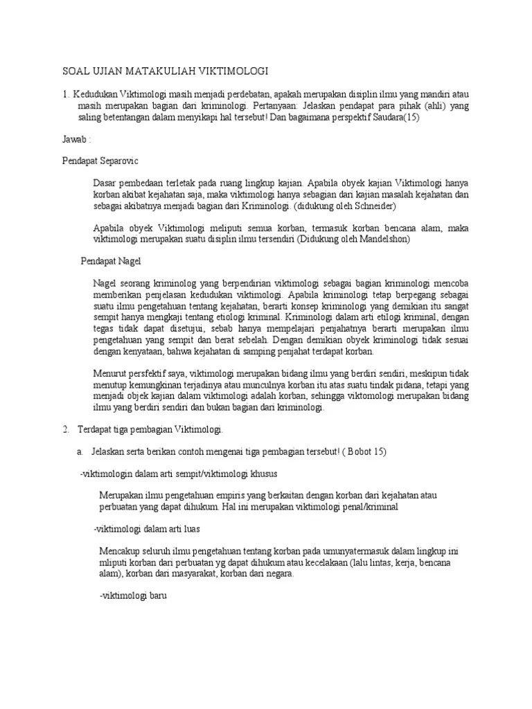 Soal Uas Mata Kuliah Hukum Perlindungan Anak : Soal Ujian Viktimologi - Dunia Sosial - Chapter iv pusat pertanggung …